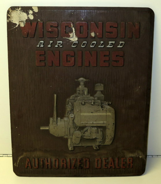 17"x14", very detailed engine graphics, made of a pressed wood and painted; has two large white paint spots on the front, will clean up some