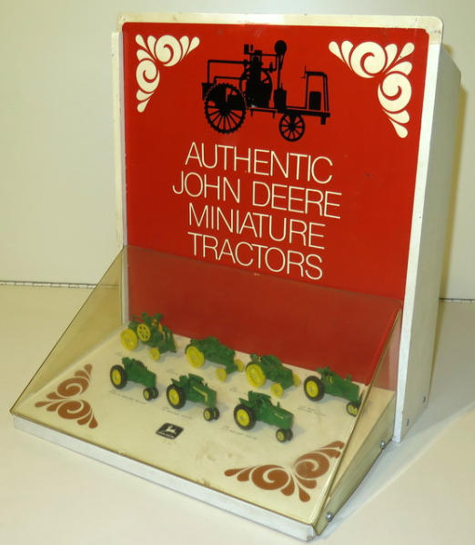 Scarce set, used by the dealerships to show the 7pc set; the 4010 has some chips, rest of the toys are mint, background is clean and nice, plastic cover is a little discolored which is typical with this set, overall a nice and scarce example