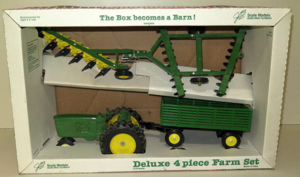 Generic Tractor with 4 implements, clean box, toys could use cleaning