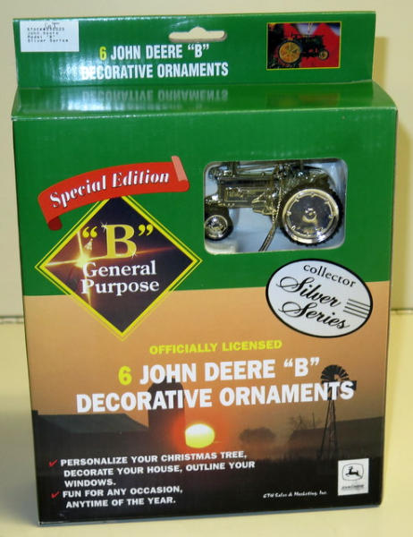 Online Only John Deere Farm Toy Auction 15 Ohio Street, Wakonda, SD 57073 All Sizes, nearly all John Deere! All from the Jeff Anderson Estate of Spring Valley, WI Catalog | Terms of Auction | Print Catalog Catalog | Terms Back to Catalog #483 – JD 6pc Christmas Ornamentals Set--Silver Model B's NIB More Details NIB Location: 15 Ohio Street, Wakonda SD, 57073 High Bid: $5.00 – oldtoycollector bidding history Bidding has closed on this lot Back to Catalog