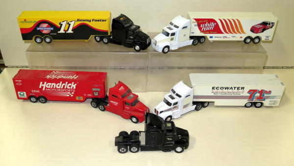 all 1:64th scale, plastic trailers, could use a cleaning, all for one money