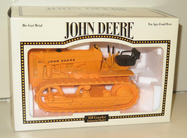 Hintz Online Only Toy & Memorabilia Auction 15 Ohio Street, Wakonda, SD 57073 Super selection of mostly John Deere Toys, Memorabilia, Collectibles & more! All from the Richard Hintz Estate of Holestein, IA. Catalog | Terms of Auction | Print Catalog Catalog | Terms Back to Catalog #612 – JD 430 Ind. Crawler Shelf Model--rubber Tracks NIB More Details NIB Location: 15 Ohio Street, Wakonda SD, 57073 High Bid: $25.00 – shopmuleman bidding history Bidding has closed on this lot Back to Catalog