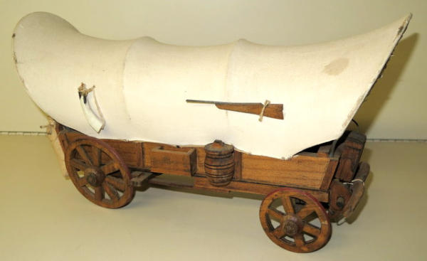 no horses, nice detail, about 18" long, a little smaller than Breyer size