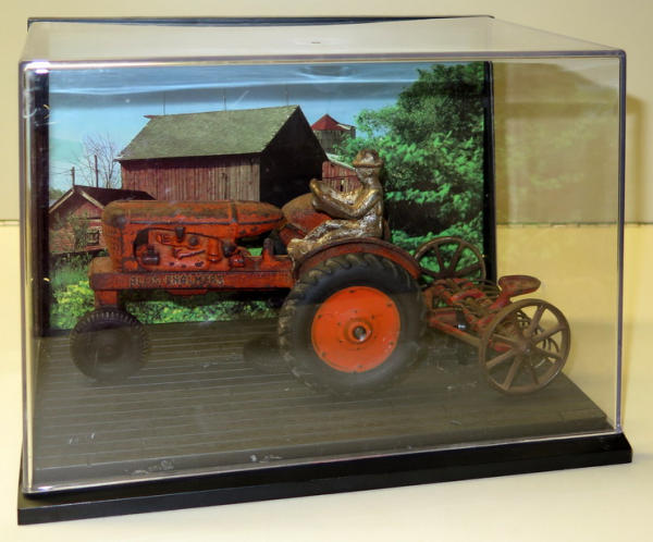 paint is pretty weak on the tractor and the implement, comes with a showcase, all to go for one bid