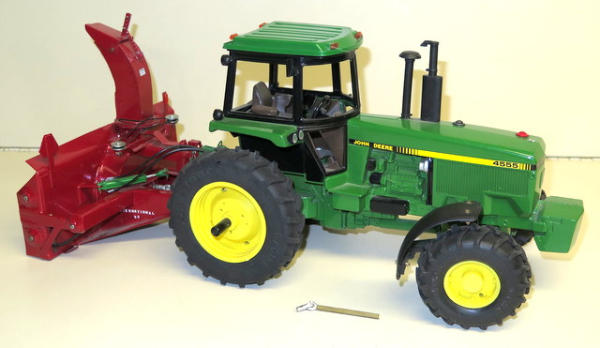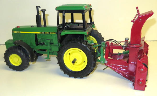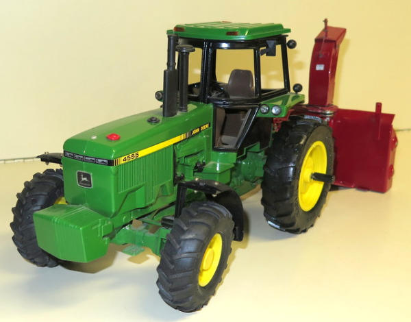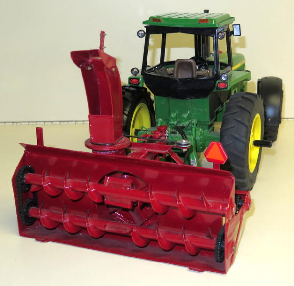 Ertl tractor that has been pretty heavily customized with lights, front fenders, 3pt, quick hitch and more; Snow blower is 100% scratch built and looks good, nice set