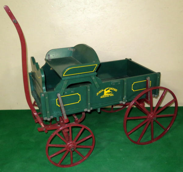 All wood with steel wheels, nice original with some scuffs and scratches from age and handling