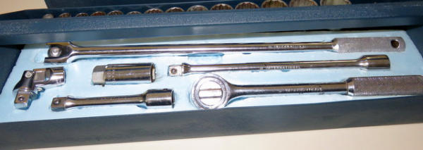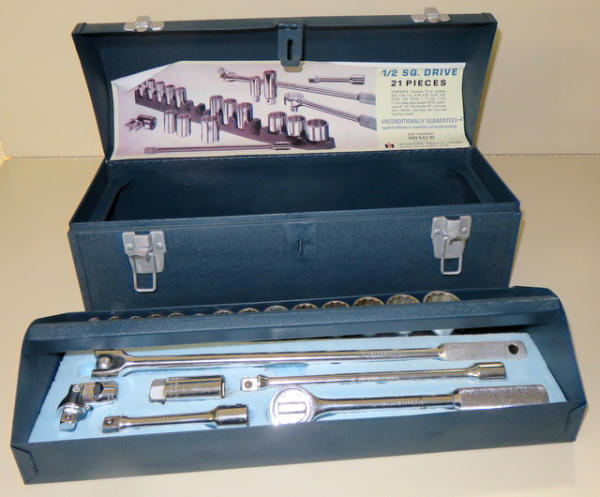 Complete set, Tools look good, but most are used, insert is a new piece of Styrofoam, tool box has been nicely restored and paper is a reprint