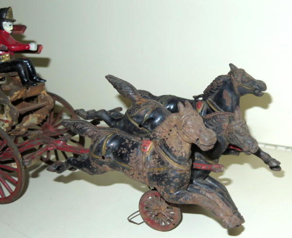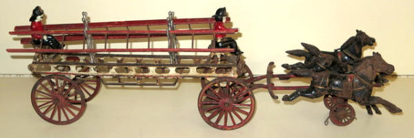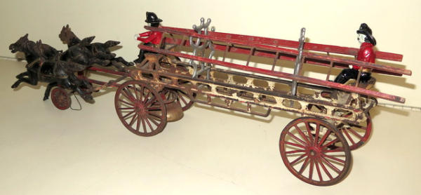mostly original paint, about 22" long, ladders are original, drivers & ladder racks are replacements