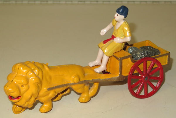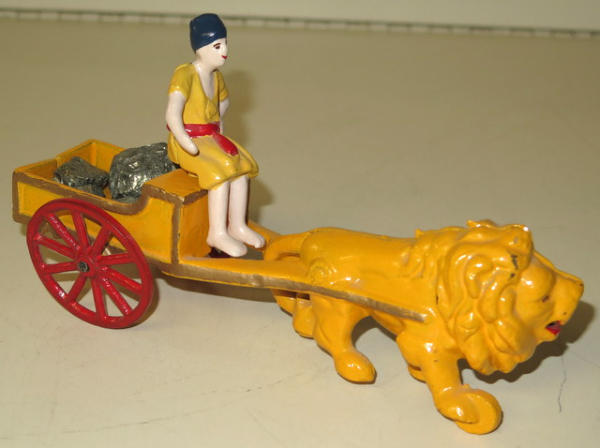 Lion & Cart as casted as single piece, 8" long, comes with load of fools gold too