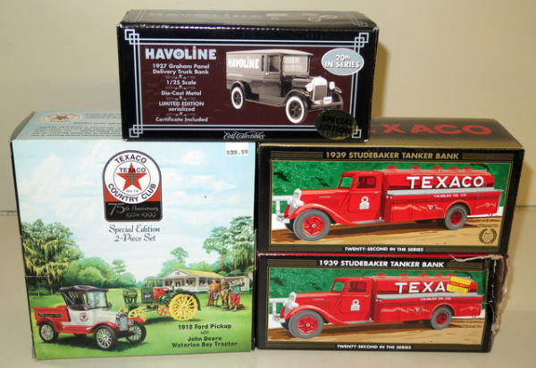 January Online Only Auction #2 15 Ohio Street, Wakonda, SD 57073 Nearly 500 Lots! Farm Toys, NASCAR including lots of Earnhardt Pieces, Budweiser, Coca-Cola, Gas & Oil & more! Lots of Variety! All from a single South Dakota Estate Catalog | Terms of Auction | Print Catalog Catalog | Terms Back to Catalog #371 – Lot of Texaco Truck Banks all to go More Details all to go Location: 15 Ohio Street, Wakonda SD, 57073 High Bid: $25.00 – jas1017 bidding history Bidding has closed on this lot Back to Catalog