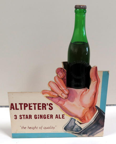 made of heavy cardboard, very nice shape, comes with embossed bottle still full, 10" long