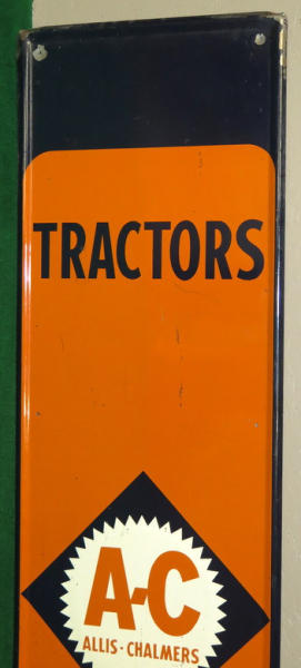 another beautiful sign, has some light scuffs and paint loss around the mounting holes, but was obviously never hung outdoors, 18"x6', rare sign we have never seen or handled before