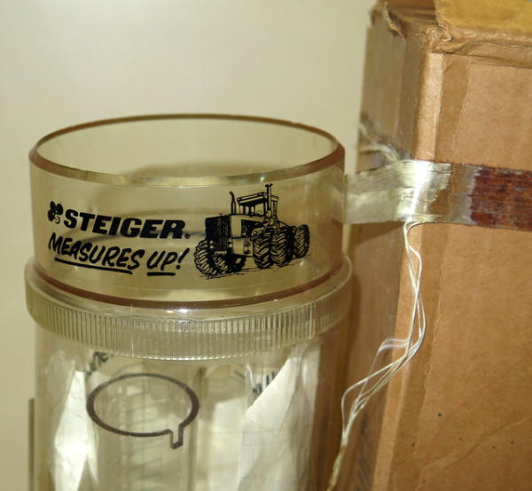 large, about 13" tall, has all the original paper work and original box, never sued, hard to find Steiger piece, only the 2nd one we have seen