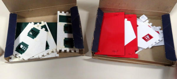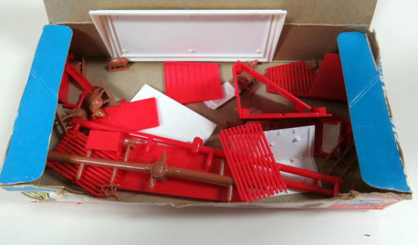 Farm Buildings & Animals; Bridge & Pond Unit; (2) Cape Cod House Kits (one Green & one Red); HO Scale; kits are complete; boxes show some wear; all for one money