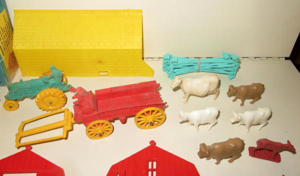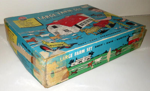 looks complete, box is 14"x11", box has quite abit of wear and tape, toys have normal wear