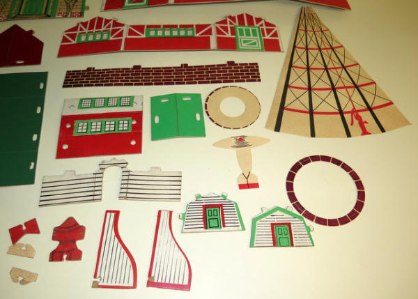 heavy cardboard, never assembled, out box has some tape and wear, box measures 16"x9.5"