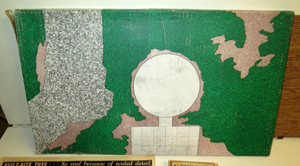 never set up, box was used as the packing box, has some wear, box measures 21"x13"