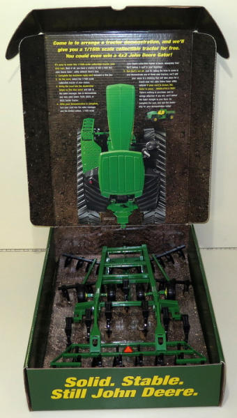 neat piece, I think if you bought the real tillage tool, they sent you this in the mail with the offer for a new toy tractor too if you scheduled a demonstration; full 1/16th scale, outside of the box has a water stain