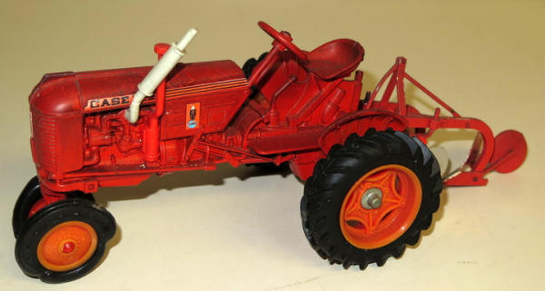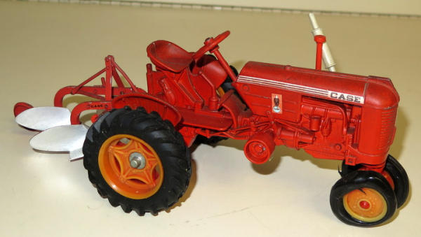 1/16th scale, Ertl Toy with custom plow, heavy smoke damage and wheels are a little melted, as-is, nice looking plow