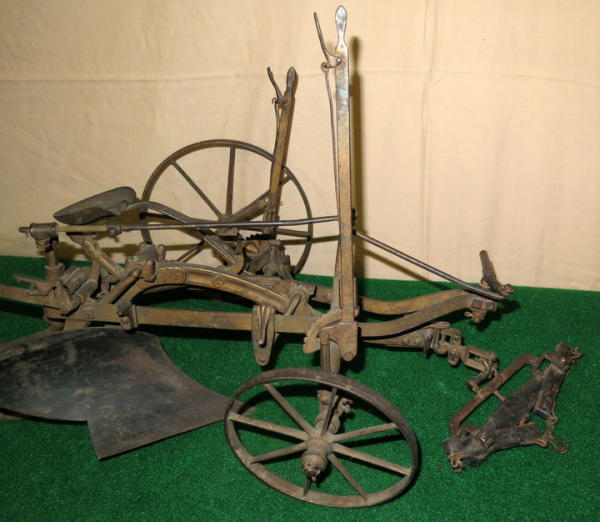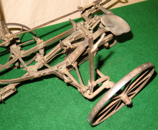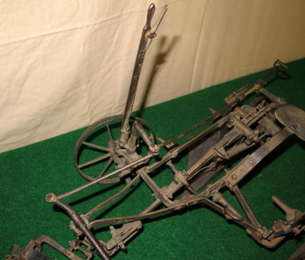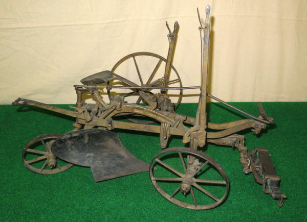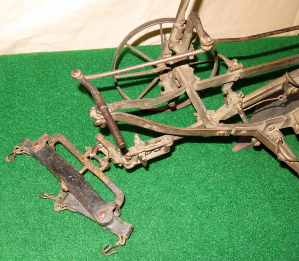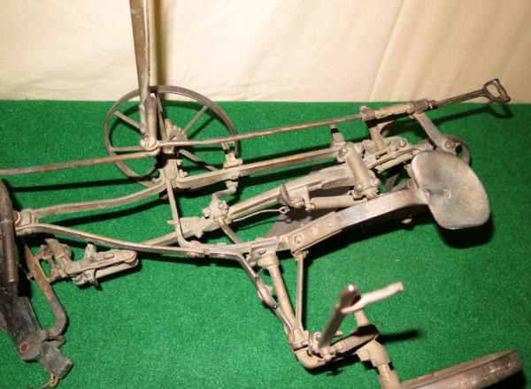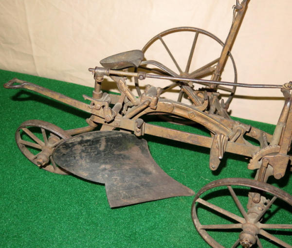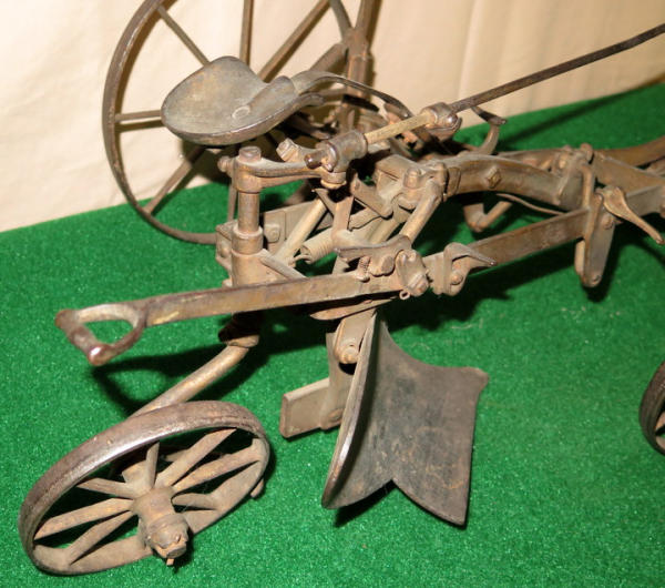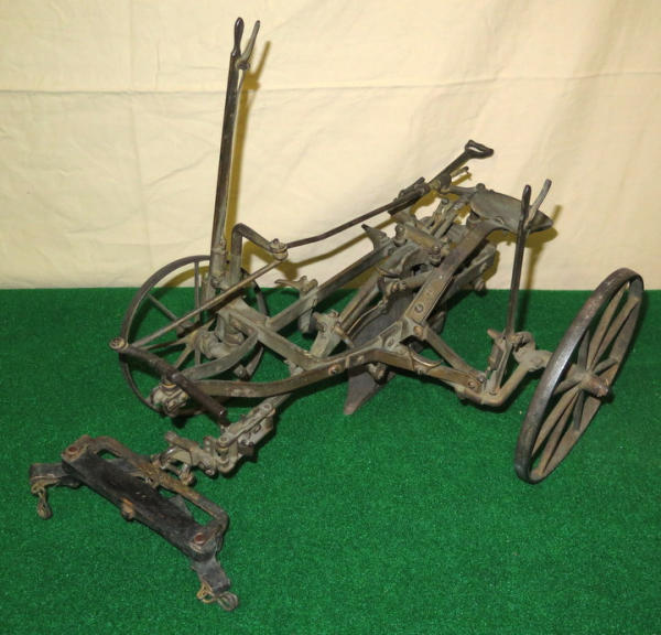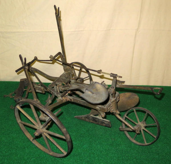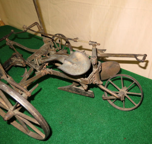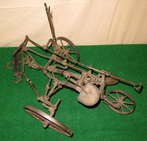 Super scarce piece of JD history, about 21" long, largest wheel is 7.5" across, great original finish, not marked JD anywhere, but was always told these were a JD salesman sample--awesome, 1st one we have ever sold