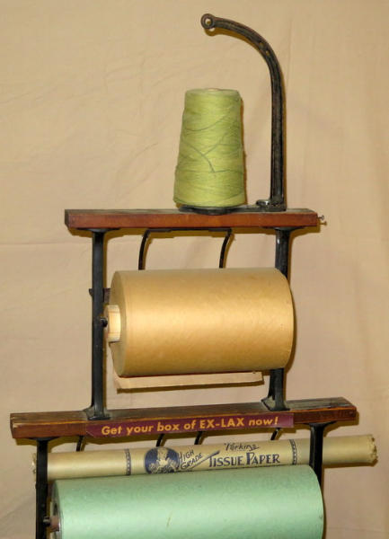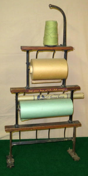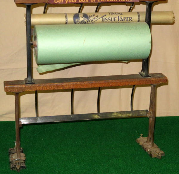 nice cast iron logo bases, 23" wide, 46" tall, has some old rolls of paper still on it, unique