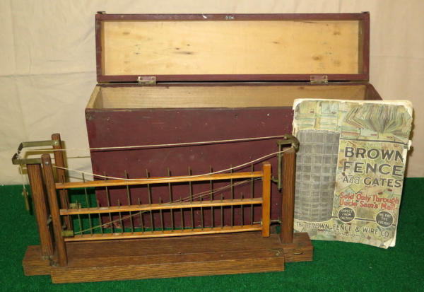 19" long, 9" tall, very high-quality made piece, oak base, original catalog is worn, fence is not marked, nice piece