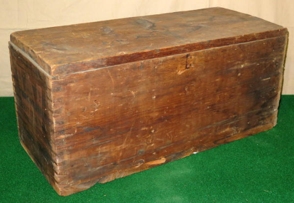 neat piece, heavy dovetailed box, only printing on the one end, box measures 27"x12"x12", great piece