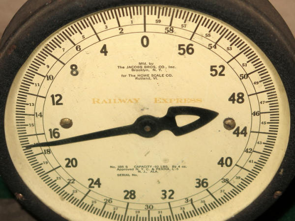 marked "Railway Express" on both sides of the face, 20" long, face is 8.5" across
