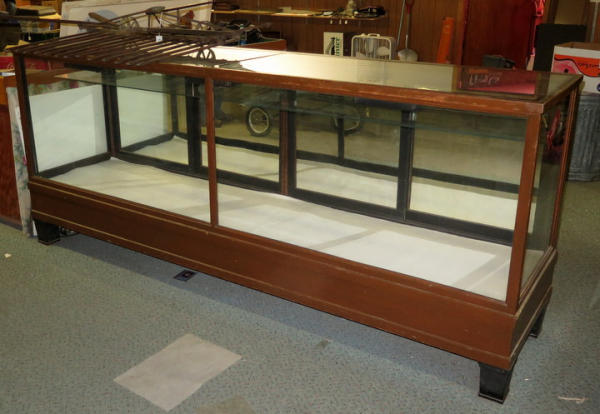 8' long, 40.5" tall, 24" deep, only includes the one shelf, wood; local pickup only