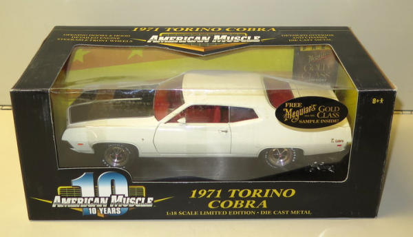 Huge Online Only Farm Toy & Diecast Auction 15 Ohio Street, Wakonda, SD 57073 1,000+ Pieces! Farm Toys, American Muscle Cars, and much more! 1/8th to 1/64th and everything in-between! All from the Chaney Gillham Collection of North Dakota. Catalog | Terms of Auction | Print Catalog Catalog | Terms Back to Catalog #307 – 1/18th--1971 Ford Torino Cobra--White NIB More Details NIB Location: 15 Ohio Street, Wakonda SD, 57073 High Bid: $37.50 – joebeedee bidding history Bidding has closed on this lot Back to Catalog