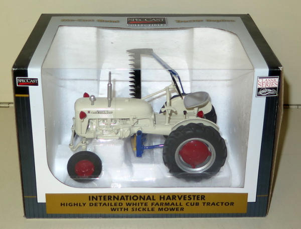 Huge Online Only Farm Toy & Diecast Auction 15 Ohio Street, Wakonda, SD 57073 1,000+ Pieces! Farm Toys, American Muscle Cars, and much more! 1/8th to 1/64th and everything in-between! All from the Chaney Gillham Collection of North Dakota. Catalog | Terms of Auction | Print Catalog Catalog | Terms Back to Catalog #477 – IH Farmall White Cub Demo w/ Sickle Mower High Detail NIB More Details NIB Location: 15 Ohio Street, Wakonda SD, 57073 High Bid: $45.00 – veliedeere bidding history Bidding has closed on this lot Back to Catalog