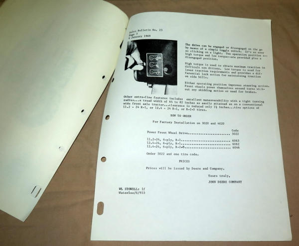 3 sheets stapled together, shows it available on the 3020 & 4020, light wear, neat piece
