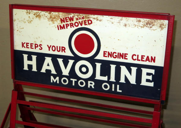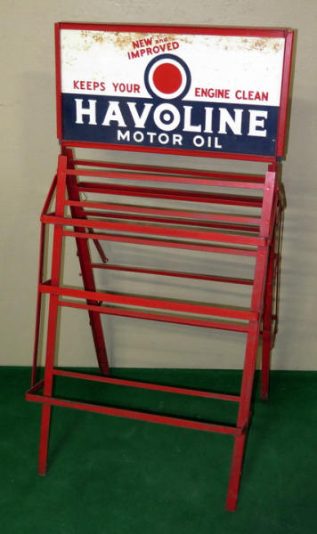 neat original rack, red paint looks original and good condition, sign is a little rusty on both sides, sign is 22"x12", rack is 44" tall overall