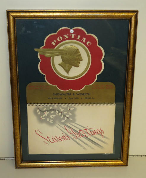 nice looking Pontiac piece, framed, so I can't see the year, but guessing late 1940's or 1950's, overall is 17.5"x13"
