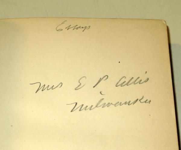 has the decal in the front cover from his personal library and then signed inside by Mr.s EP Allis, has some normal wear, but unique, comes with a history sheet on the Ed Allis; another unique piece for the AC collector