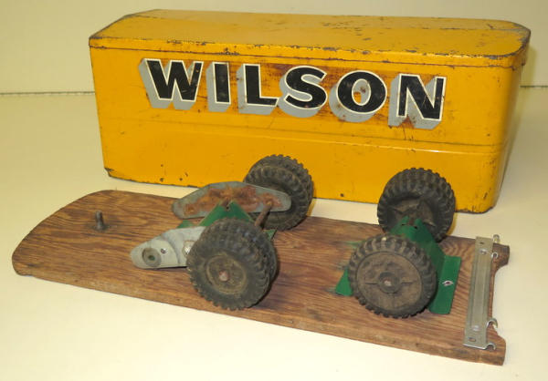no back doors, floor is off and axles are off, rare trailer that needs a little TLC, as-is