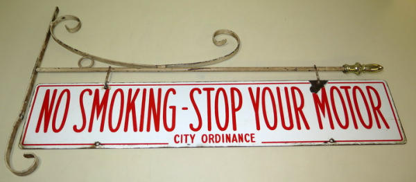 Sign is 30"x6", metal bracket looks good with this sign, don't know if it's original, had a plastic cap added to the end, nice looking sign