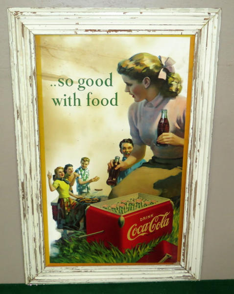 original sign, frame is old, but not original to the piece, has some general wear, 39"x59"