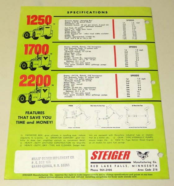 early Steiger when they were still in Red Lake Falls, MN; 4-pages, binder holes punched, light wear