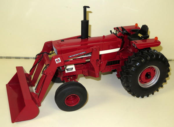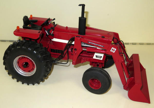 Large rear wheels, front rubber tires, muffler, 2-bulb fenders & flashers, 3pt, all levers, all red IH Loader, hoses plumbed into remotes, very nice