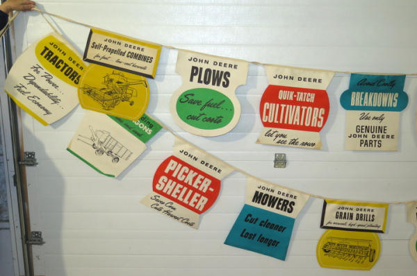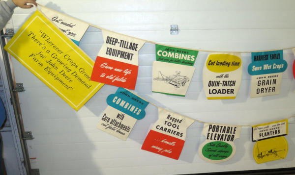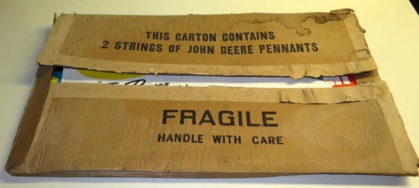 don't believe it was ever used, great graphics with the equipment, paper pennants with cloth string, looks to be about 20' long or so, box has some general wear