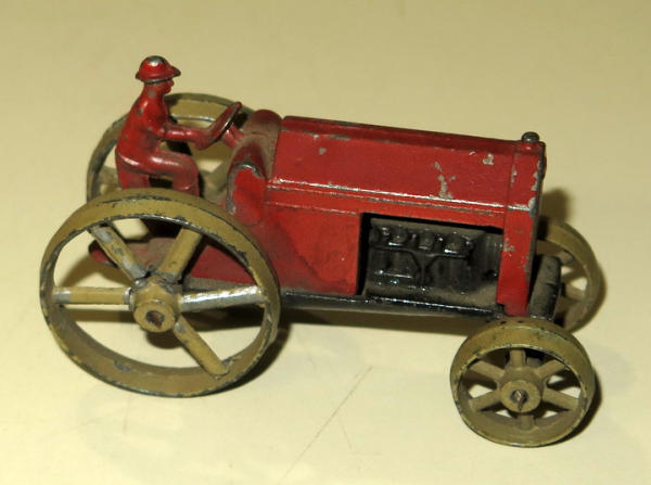3" long, pretty nice original, very early toy tractor, 1920's era and hard to find in good condition