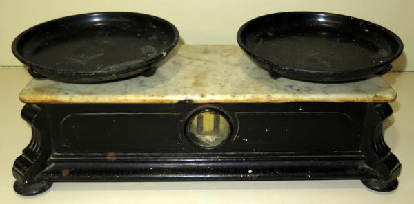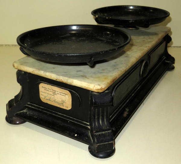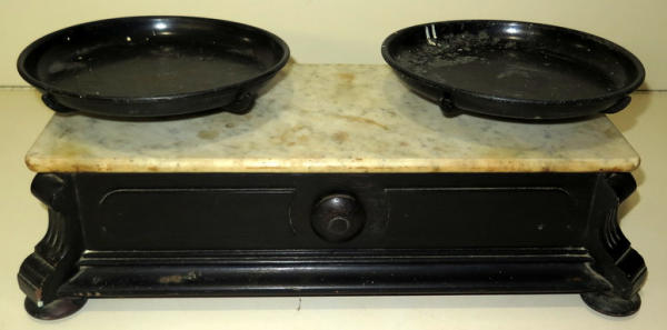 I don't see a name, nice wood base, marble top, has a tag on the side from the KS Dept. of agricultural dated 1953, but I'd say it's quite abit older than that, needs a tune-up to work, 21"x10", marble needs cleaning