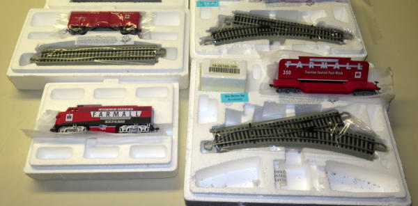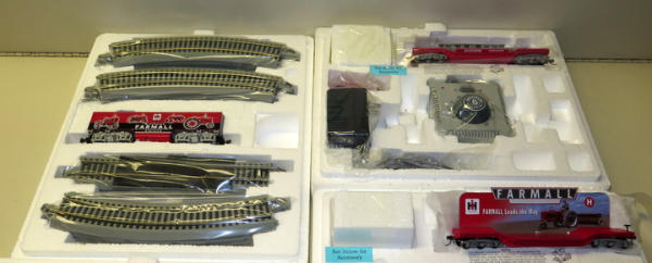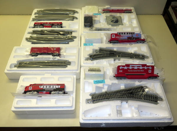 includes Engine, different flat cars w/ Tractors, Stock Car & more, all new in Styrofoam boxes, all to go