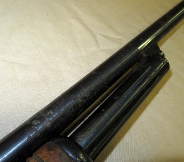 28" barrel; barrel has quite a little pitting & some surface rust; action is fairly smooth; 2.75" & 3" chamber; wood stock has hardly any finish left; no SN#