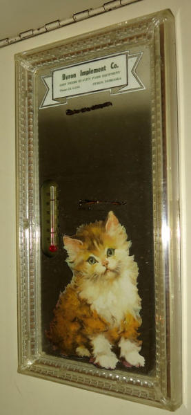 old mirror with reproduction logo added, 10"x5"