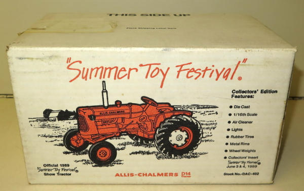 Woita Online Only Farm Toy Estate Auction 15 Ohio Street, Wakonda, SD 57073 Huge collection of Farm Toys of all brands! Books and memorabilia too! All from the Don Woita Estate of Valparasio, Nebraska. Catalog | Terms of Auction | Print Catalog Catalog | Terms Back to Catalog #318 – AC D-14 wf '89 Summer Toy Fest NIB More Details NIB Location: 15 Ohio Street, Wakonda SD, 57073 High Bid: $37.50 – supertruckers bidding history Bidding has closed on this lot Back to Catalog