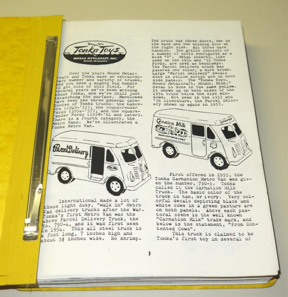 several hundred pages of photocopied Tonka Catalogs, all loose leaf bound, good condition