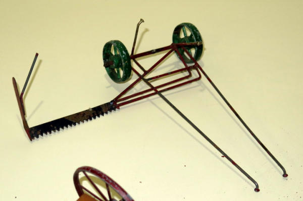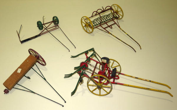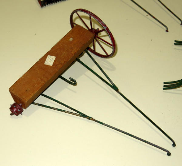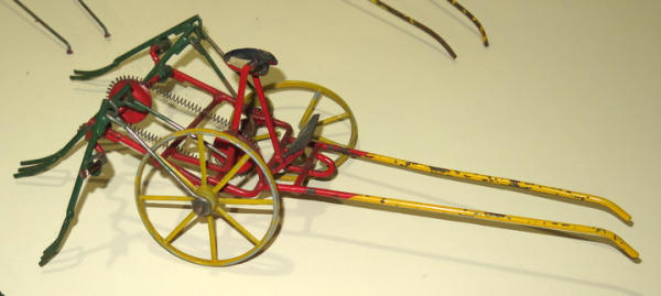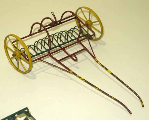 Drill is missing a wheel, Tedder has a broken wheel, very nicely built and fairly early pieces, but I don't know by who, close to 1/16th scale, unique set, all to go