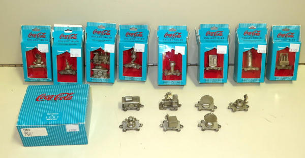 all about 1" long; nice detail, all have boxes; includes one full set in larger box with a $35 price tag! Sells 9x the money